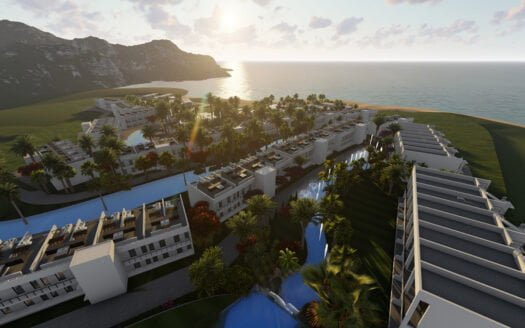 On the third row of 2 apartment blocks, there are 8 duplex garden apartments with two bedrooms and a two-story living-dining-kitchen area. All apartments open to a private garden in front of the living areas. In the same two blocks, 4 private penthouses with 3 bedrooms and a large private roof terrace for each flat offer magnificent sea and mountain views. Both apartment blocks have a green area at the entrance with lots of parking spaces.